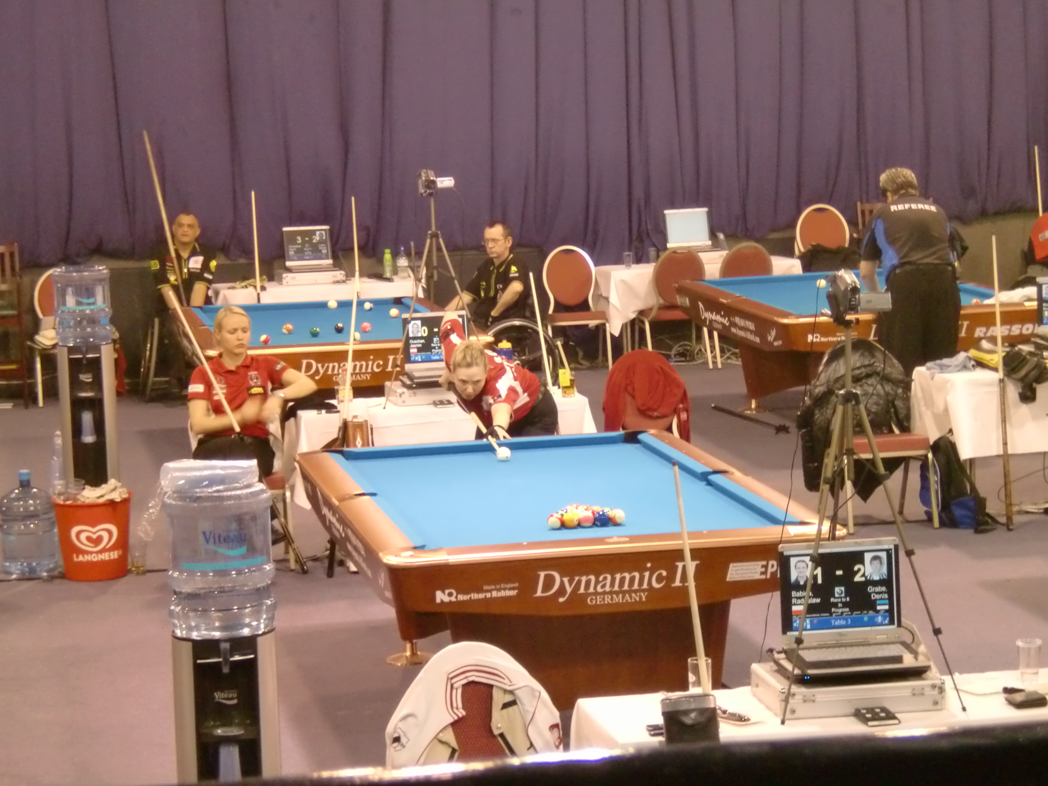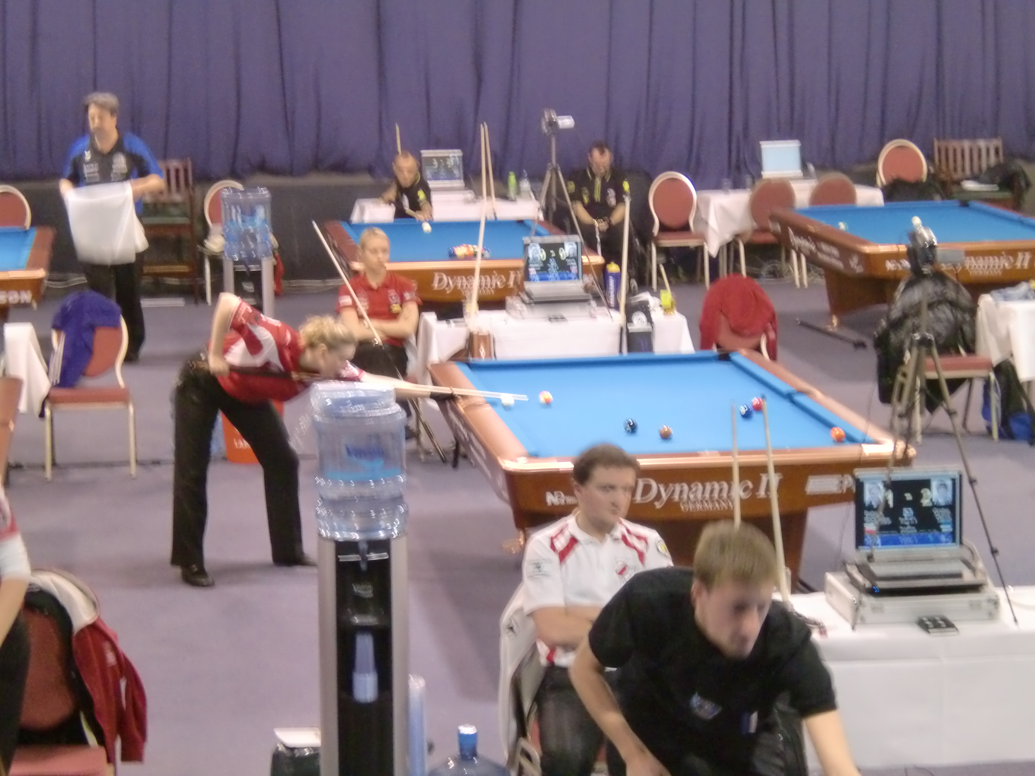 Another long day is over. The 8-ball started yesterday and I lost my first match against Petra Stadelbauer (AUS) with 3-6. I played ok, but missed to many key shots. My next match was today, but Line played the finals in straightpool against Jasmin, and I was not in the room before veeery late. Line took silver in the straightpool by the way:)