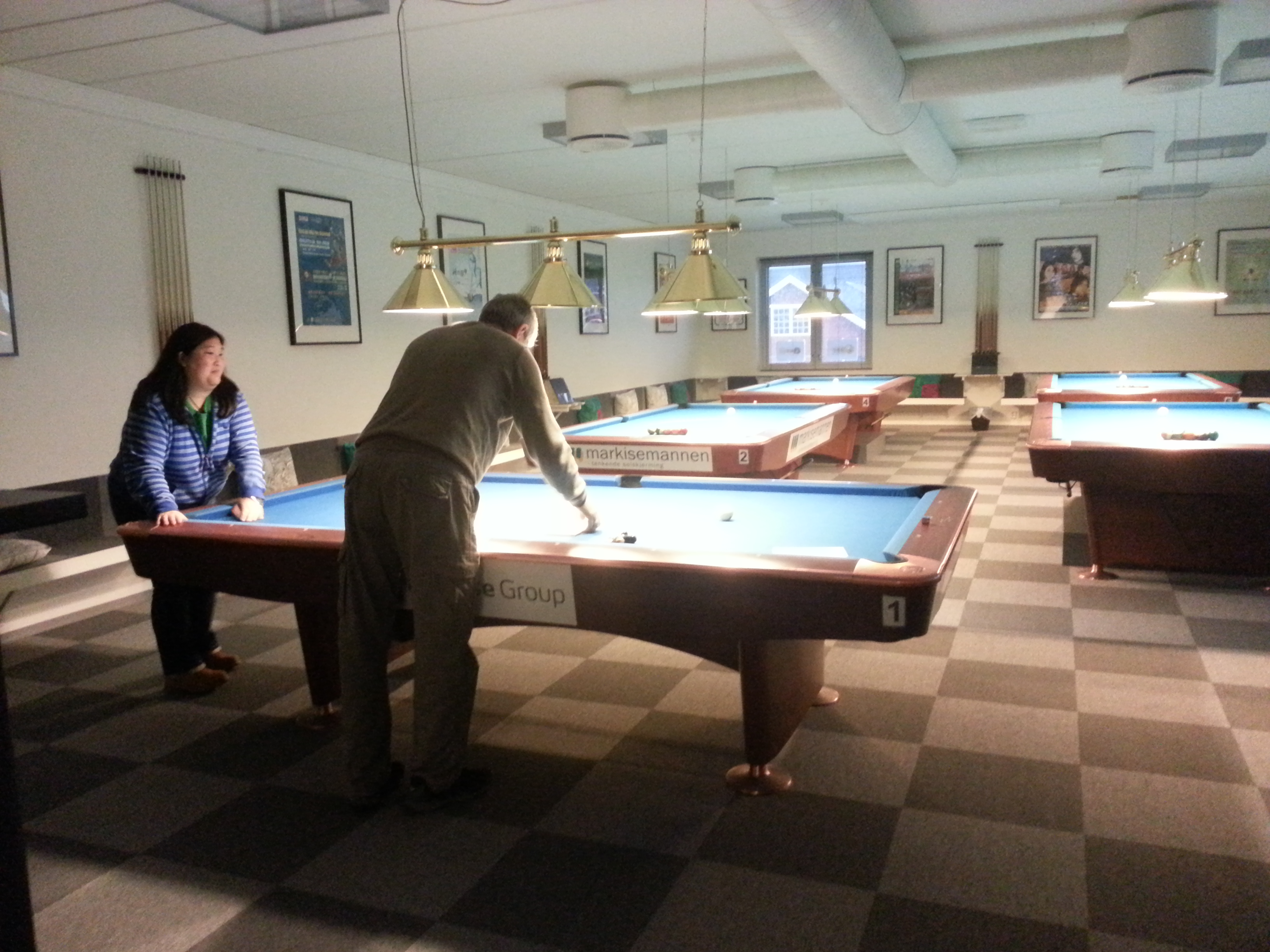 Sunday the board of the Norwegian Federation came to watch, that was also a nice “extra” this weekend. Sunday ended with a trip to Oslo Biljardsenter to see the new place, Thanks Sri and Kjersti. The place looked great:)