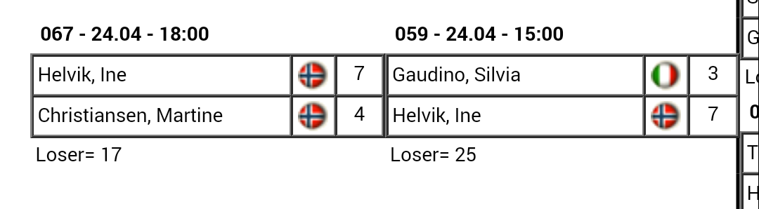 Today I have played really well and I am super happy about my performance:) I had to win two matches today to qualify for the last 16 and I did. 7-3 over Silvia Gaudino and 7-4 against my teammate Martine Christiansen. Play again tomorrow morning at 10. I don’t know my opponent yet, but I wouldn’t be surprised if I draw Line Kjørsvik:)