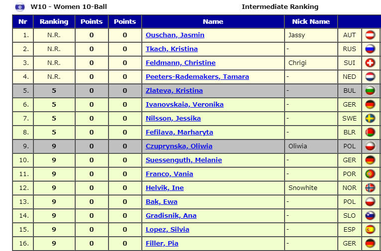 EPBF / Dynamic Billard European Pool Championships Seniors & Ladies 2022 Laško
