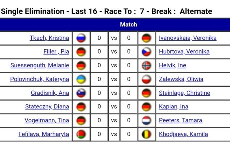 I struggled through with wins over Ann-Sofie Löfgren ans Sinem Kokten yesterday. Ready for last 16, playing Melanie Süssenguth at 10.