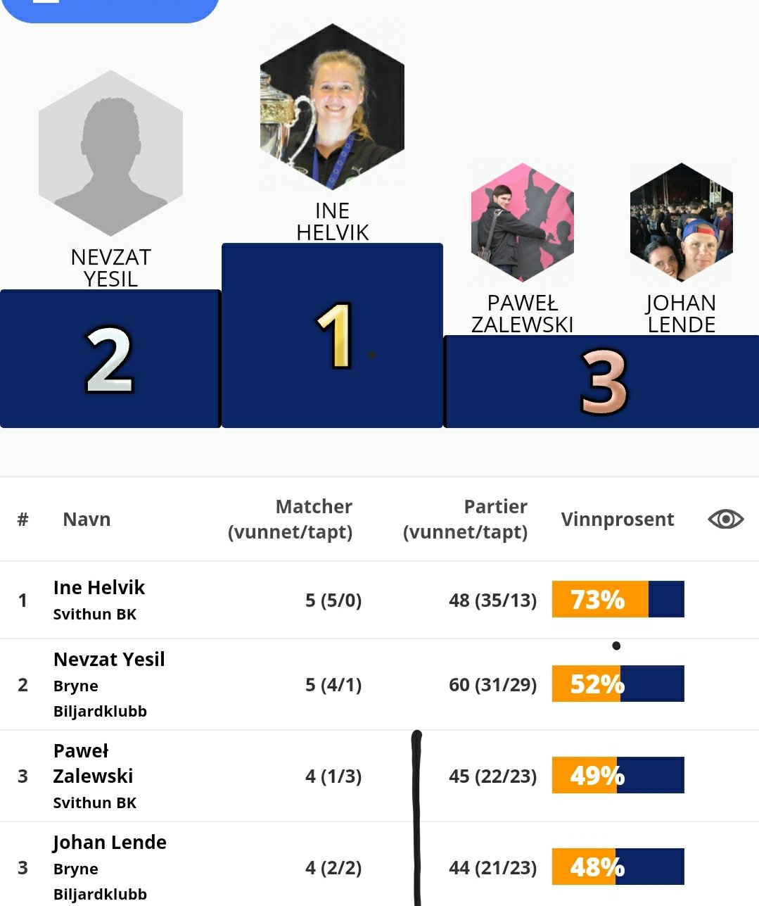 2 out of 3 tournaments won, good start of the season:) I still can’t do a decent break because of my elbow, but I think that’s more my opponents problem than mine. I am going to rest my elbow a couple of weeks and see if it gets better. Next tournament is not before December as the Norwegian Championship 9-ball in Oslo next month is cancelled due to covid.