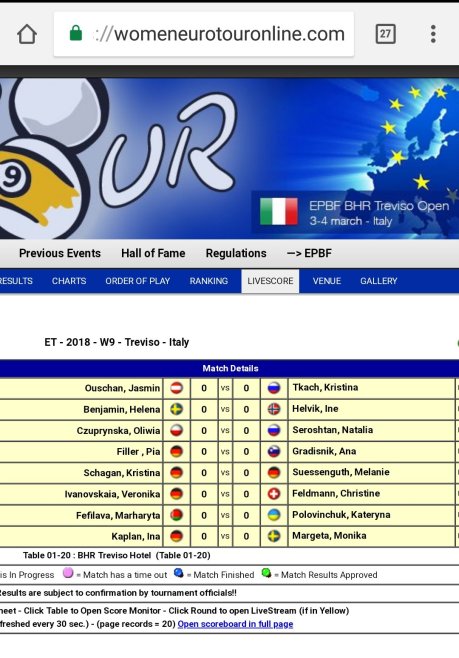 Nina and I start tomorrow and the draw will be made later today. As always you can find the draw and livescore on womeneurotouronline.com and livestream on kozoom.com and for free on EPBF facebook page.