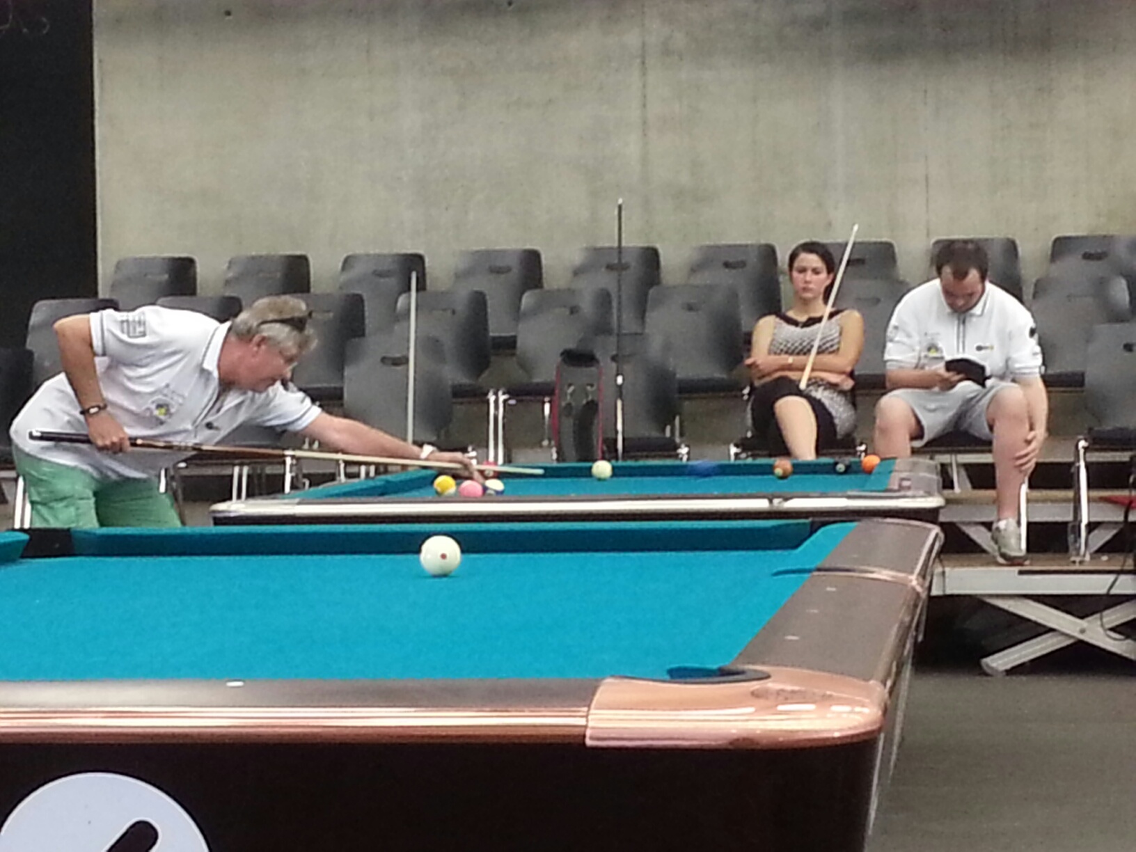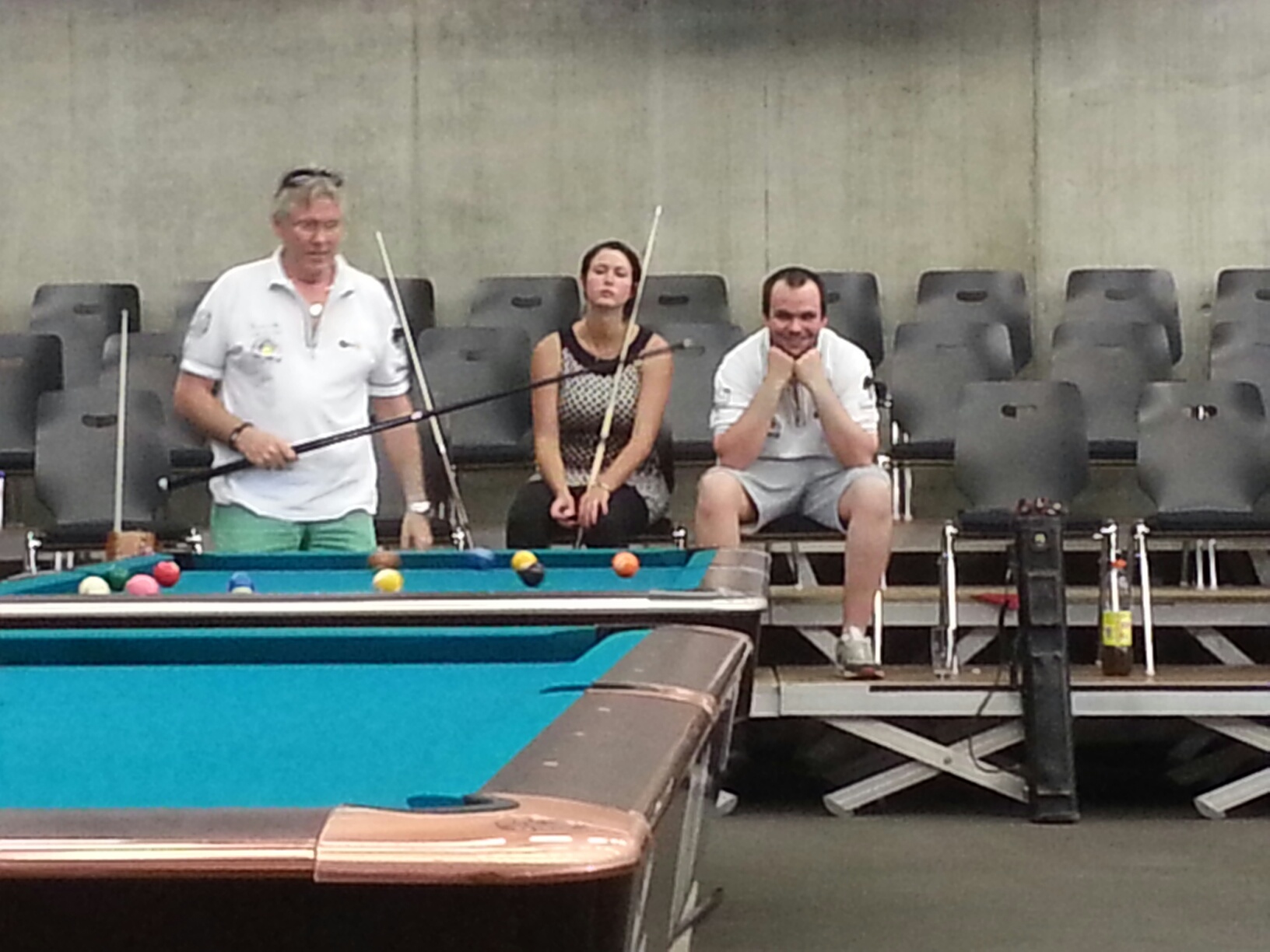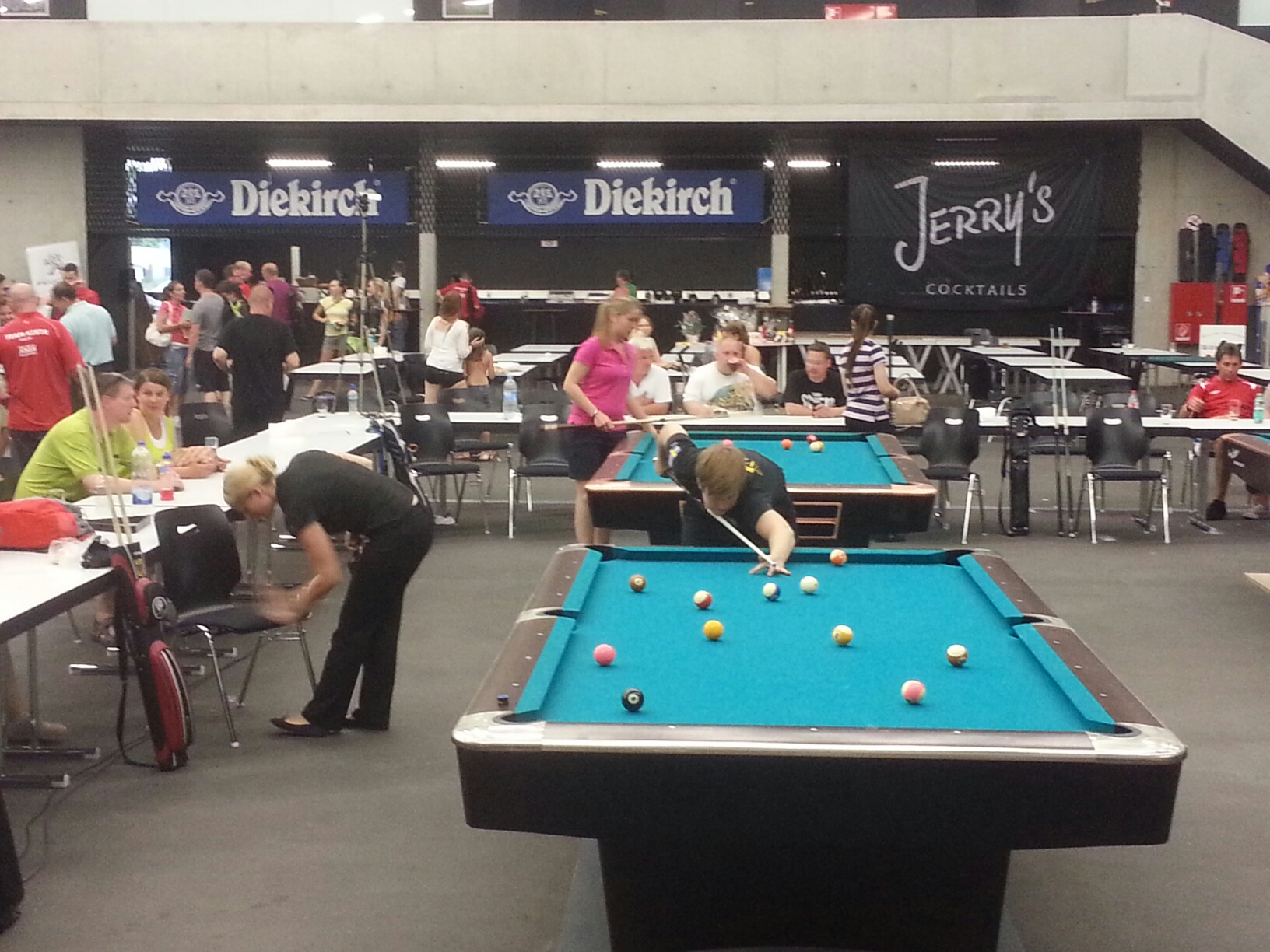 In Womens Eurotour tournament I ended up 33rd, just outside the single elimination. I really struggled in the heat and I fell short. I lost my first match against Christine Feldmann ( SUI) 2-5. missing all the important shots and she did not. Next match against Ortenzia Haefliger (SUI) was better, I remembered to play safe instead of missing the difficult key shots:) I won 5-1. Against Marketa Mlejnkova (CZE) I played better again and won 5-3. Then it was time for the LQ and now Christien Wiechert (GER) was my opponent. I started to play really good, just to mess it up in the end. I just got out of position on the last ball or the 8-ball time and time again and Christine played very well. She won 5-1. The simply made the ultimate sin in 8-ball, clear the table and solve all the problems before I let my opponent back on the table:(